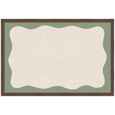 Kate and Laurel Framed Fabric Pinboard Wavy Neutral Linen and Green Wall Organization, 38x26, Florence Medium Brown