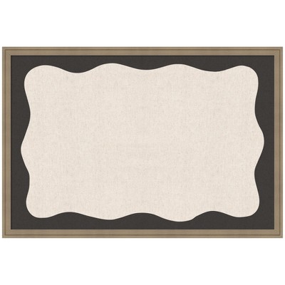 Kate and Laurel Framed Fabric Pinboard Wavy Linen Light and Black Wall Organization, 38x26, Florence Light Brown