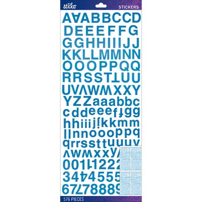Sticko Alphabet Stickers - Helvetica Standard Font, Blue Foil, 121pcs