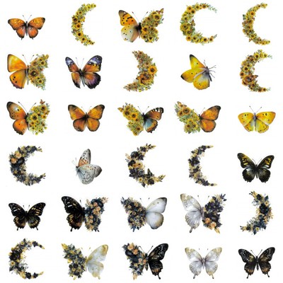 Wrapables Shiny Waterproof Transparent Holographic PET Bird and Butterfly Stickers for Scrapbooking, Journaling, Water Bottles, Laptops (20pcs)