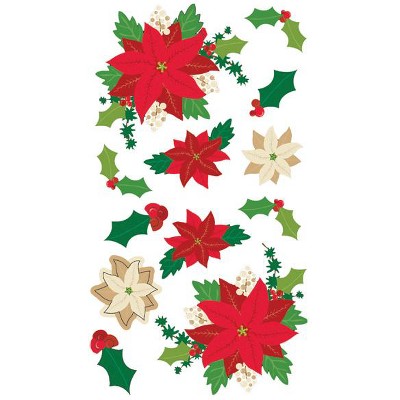 Sticko Christmas Stickers - Glitter Poinsettias, 12pcs