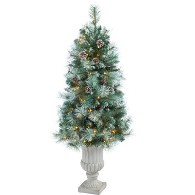 Nearly Natural 4.5-ft Frosted Tip British Columbia Mountain Pine Artificial Christmas Tree with 100 Clear Lights