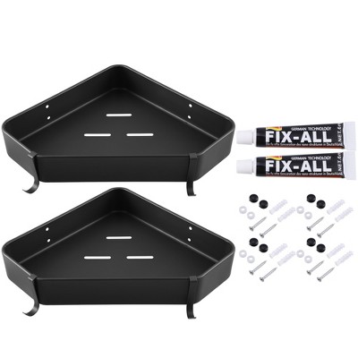 Unique Bargains Bath Corner Shower Shelves Adhesive Caddy with Hooks Drill for Bathroom 9.57"x9.57"x1.97" 2 Sets