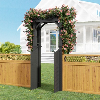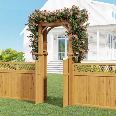 Wood Garden Arch Arbor with Gate & Trellis, Outdoor Wooden Arbor for Climbing Plants, Fir Wood Trellis Arch for Wedding Backdrop, Yard Entryway