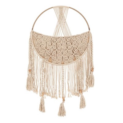 Crane Baby 20"x38" Charlie Farmhouse Macrame Boho Toy Wall Storage Organizer with Tassels Beige