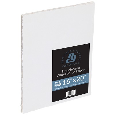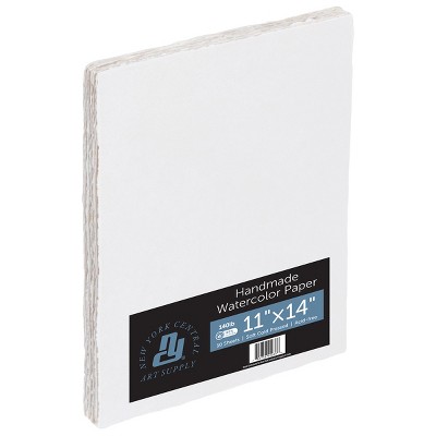 New York Central Handmade Watercolor Paper - 140lb, 11"X14" - 5 Packs of 10, 50 Total Sheets, Acid-Free 100% Cotton Rag, Cold Press, 4 Deckled Edges,