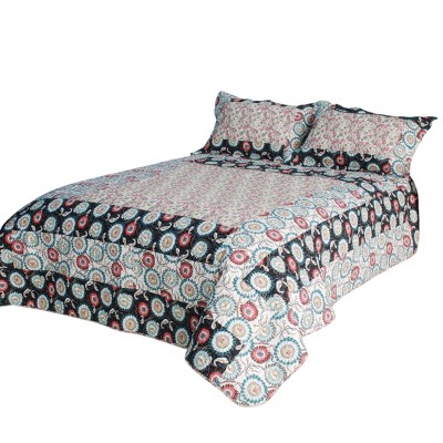 Gracie Mills Huber 3-Piece Embroidered Cotton Quilt Set
