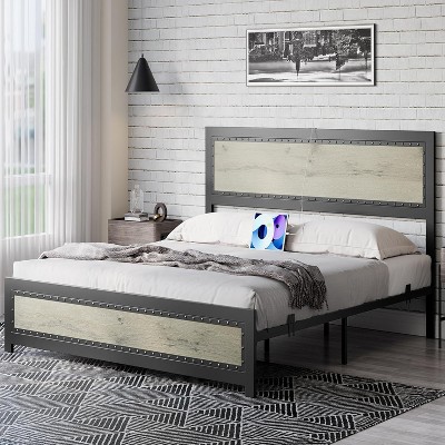 - wood queen platform bed