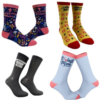 Crazy Dog Womens Awesome Mom Bundle 4 Pack Socks With Cool Designs for Fun Moms