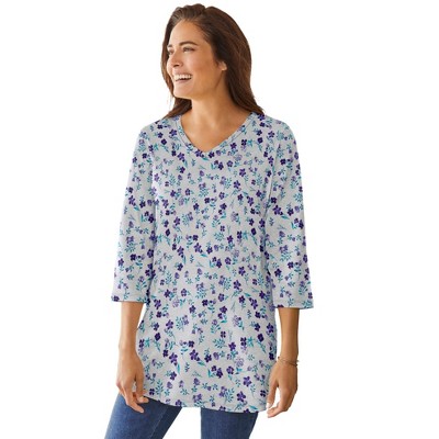 Roaman's Ultimate Rhinestone V Neck Tunic