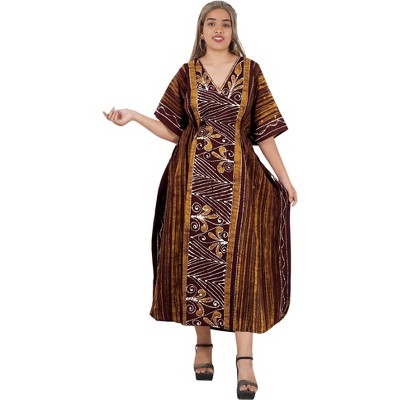 LA LEELA Women's Summer Batik Caftan Loungewear House Dashiki Dress Kaftan Nightshirts for Women Sleepwear Plus size 2X-3X Brown, Floral