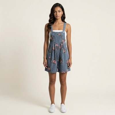 Anna-Kaci Women's Floral Denim Overall Romper Adjustable Strap Sleeveless Shortalls Loose Fit