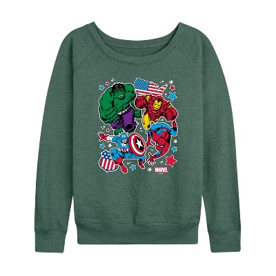 Women's - Marvel - Hulk Smash Lightweight French Terry Wide Neck Long Sleeve Graphic Shirt
