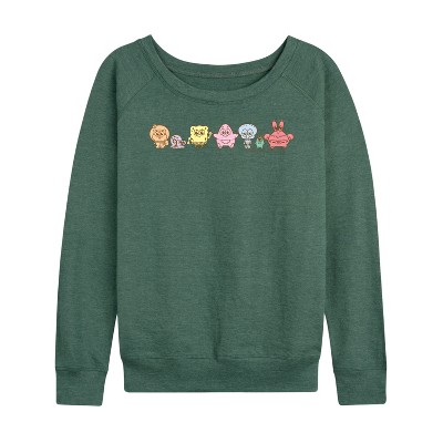 Women's - Spongebob Squarepants - Adorabob Lineup Lightweight French Terry Wide Neck Long Sleeve Graphic Shirt