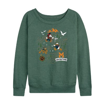 Women's - Disney - Mickey Kayak Explore Lightweight French Terry Wide Neck Long Sleeve Graphic Shirt