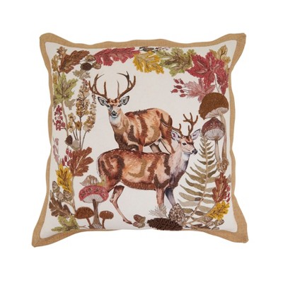 Saro Lifestyle Embroidered Deer Poly Filled Throw Pillow, 20", Multi