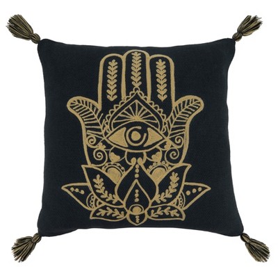Saro Lifestyle Saro Lifestyle Block Print Decorative Pillow Cover, Black, 18"x18""