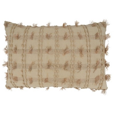 Saro Lifestyle Bands of Comfort Throw Pillow Cover, Beige, 16"x24"