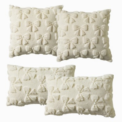 4-Pack Bow Faux Fur Throw Pillow Covers, Square & Lumbar Set 18x18/20x12 Inch, Faux Fur Plush Coquette Decor for Couch Sofa Bed, Home Decoration