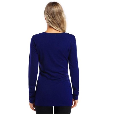 Women's Maternity Tops V-Neck Contrast Color Casual Shirts Nursing Tops Long Sleeve Pleated Hem Breastfeeding Pregnancy Clothes