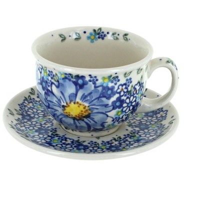 Blue Rose Polish Pottery 33 Vena Cup & Saucer