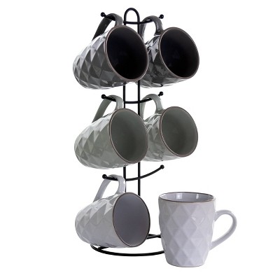 12oz 6pc Porcelain Diamond Waves Assorted Mug Set with Stand - Elama: Coffee Mugs Set, Dishwasher-Safe, 10oz Capacity