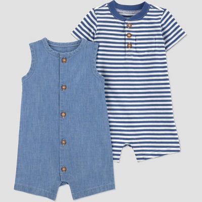Carter's Just One You® Baby Boys' 2pk Chambray and Striped Romper - Blue/Navy Blue