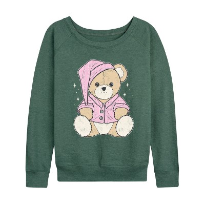 Women's - Instant Message - Teddy Bear In PJs Lightweight French Terry Wide Neck Long Sleeve Graphic Shirt