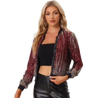 INSPIRE CHIC Women's Sequin Long Sleeve Open Front Cropped Cardigan Shrug Jacket