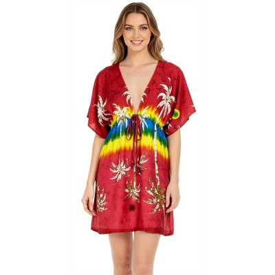 Catalonia Women’s V-Neck Backless Spaghetti Strap Cover-Up Dress, Beach Mini Summer Sundress, One Size Fits All, Gift Ideas for Moms