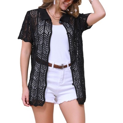 INSPIRE CHIC Women's Short Sleeve Hollow Out Button Down Swimsuit Cover Up