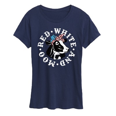 Women's - Instant Message - Red White And Moo Cow Short Sleeve Graphic T-Shirt