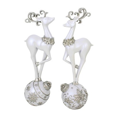 Roman 13.0 Inch Stylized Deer Figurines Christmas Figurine Set , Christmas Decor Set/2 Reindeer (2PC)