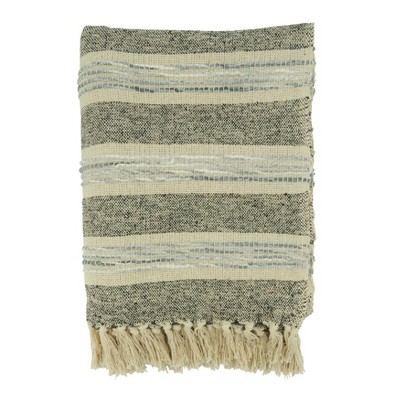Saro Lifestyle Striped Throw Blanket With Fringed Edges, Gray