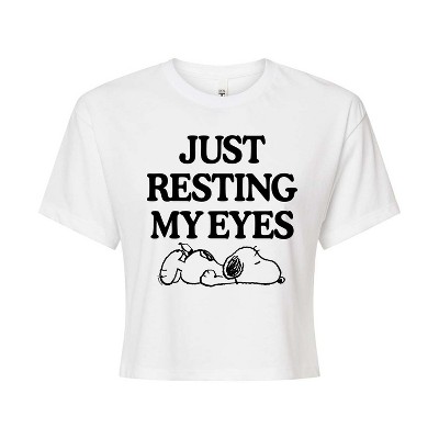 Women's - Peanuts - Resting My Eyes Snoopy Cropped Graphic T-Shirt