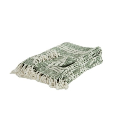 HomeRoots Green Woven 100% Cotton Throw Blanket