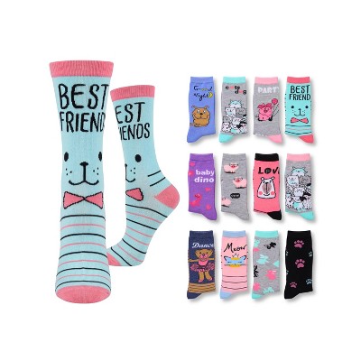 Tipi Toe Women's 12 Pairs Lightweight Colorful Cut Cat Bear Animal Friends Patterned Crew Socks