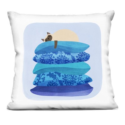 Stupell Industries Cozy Sleeping Siamese Cat Outdoor Decorative Throw Pillow, 18 x 18