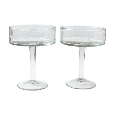 Slickblue Stylish Hammered Coupe Cocktail Glasses, 8oz, Handblown, Set of 2, In 5 Color Options
