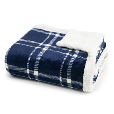 Americanflat Fleece and Reverse Faux Shearling Throw Blanket - 50x60 Inch Classic Tattersall Plaid - Ultra Soft Cozy Couch Cover - Warm - Blue