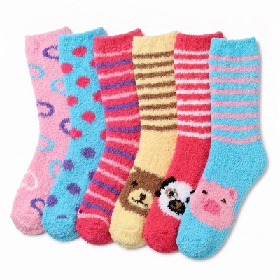 Tipi Toe Women's 6-Pairs Cozy Microfiber Anti-Skid Soft Sweet Hearts Patterned Fuzzy Crew Socks
