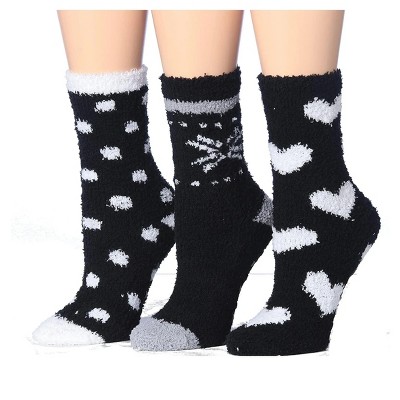 Memoi Women's Polka Dot Santa Embroidery Cozy Crew Socks Black 9-11
