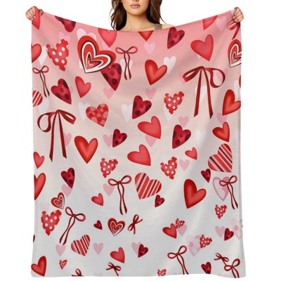 Valentine's Day Blanket, Romantic Falling Red Hearts Flannel Blanket, Ultra-Soft Cozy Anti-Pilling Home Decor Blanket 40x50 inches