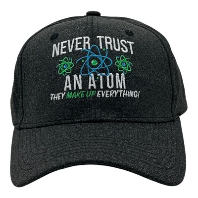 Never Trust An Atom They Make Up Everything Hat Funny Sarcastic Science Graphic Novelty Cap - Crazy Dog Hat For Science Nerds Black Standard