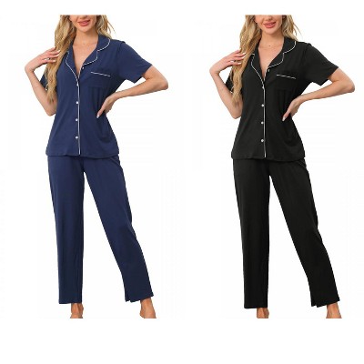 INSPIRE CHIC Women's 4 Pcs Button-Up Short-Sleeve Shirt & Pants Pajama Loungewear Set