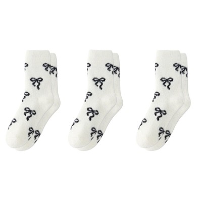 Anna-Kaci 3-Pair Women's Soft Knit Crew Socks with Allover Bow Pattern Stretch Fabric Cozy Comfort Set