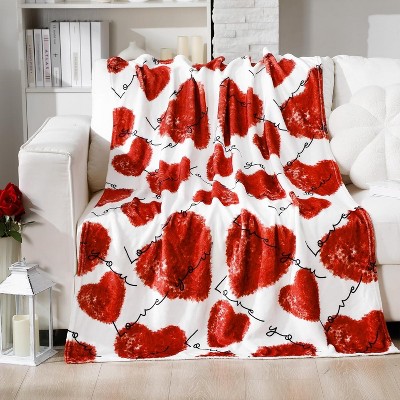 Lomsoe 1pc Valentine Flannel Blanket Throw, Love Hearts Red Soft Fuzzy Plush Flannel Cozy Blankets for Couch Sofa Bed Lounging,Gift.