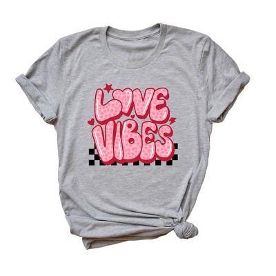 Simply Sage Market Women's Love Vibes Heart Checkered Short Sleeve Graphic Tee