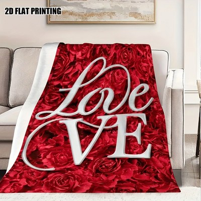 Lomsoe 1pc Cozy Love Pattern Throw Blanket,Soft Flannel Blanket,Perfect for Valentine'S Day, Home Decor, and Everyday Comfort.