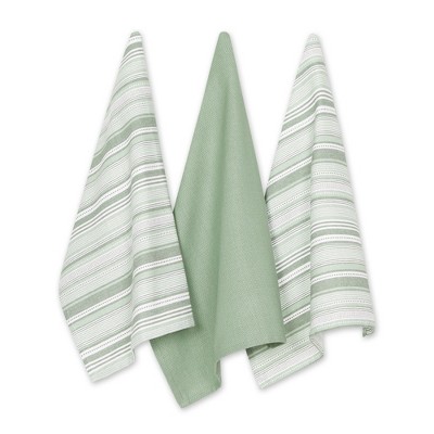 Design Imports Urban Stripe Dishtowel Set 3 Piece, Artichoke Green, 20X30"